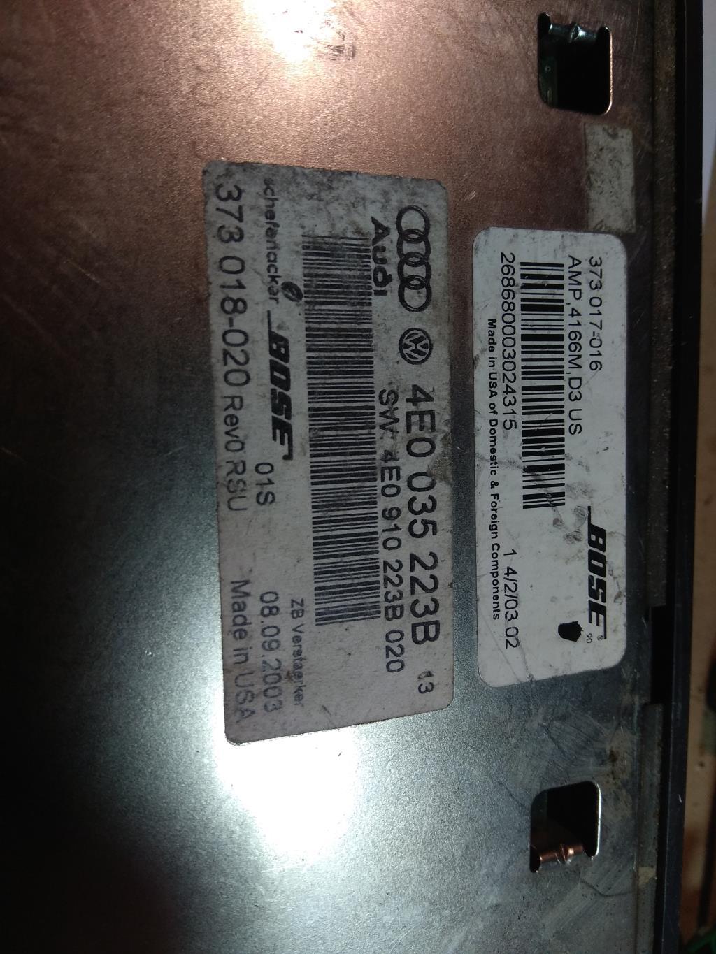 ![усилитель музыкальный Audi A8 D3/4E [2-й рестайлинг] 2007, 4.2 л., бензин, седан, 4E0910223B, . - фото №4](https://static-site.fsn1.your-objectstorage.com/18c4c760-85b8-4160-8ef8-407210b1e320/version/car-part/9168/20541/preview.jpg)